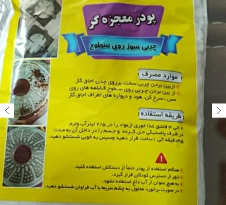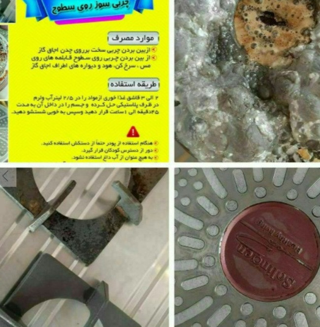 پودر نانو😍😍پودر معجزه گر نیاز همه خانم های با سلیقه ی خونه دار. چدن های اجاق گازتُ براحتی تمیز کن.😍 قابلمه های سوخته رو فوری برق بنداز😍 بدون سابیدن. 😍 پاک کردن روغن های چند ساله از چدن و شعله های اجاق گاز و... پاک کردن روغن روی هود و کاشی و سرامیک پاک کردن روغن ماشین روی کاشی و سرامیک و مخصوصا مناسب برای رستوران ها و کبابی ها 😍😍 ✴️طرز استفاده 👇 ابتدا یک ظرف پلاستیکی بردارید و 2 لیتر آب ولرم داخل ظرف بریزید 4 قاشق از پودر را داخل آب بریزید و با قاشق حل کنید سپس چدن های گاز و قابلمه و هر ظروفی ک دارید و احتیاج ب این پودر داره رو داخل آب بندازید 😊 دقت کنید ک شی مورد نظر کامل داخل آب باشه البته برای ظروف و قابلمه و شعله های اجاق گاز 5 دقیقه کافیه حتما هر 5 دقیقه چک کنید ❌ بعد از داخل آب در بیارید و باریکا بشورید 😍 برا هود و گاز دیوارهای آسپزخانه با ظرف شیشه پاک کن اسپری کنید